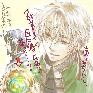 M.M.U(親世代同盟)の祭の絵板より色々。何かと不死鳥祭(5巻ネタ)と炎祭(4巻映画ネタ)。左上はセブルスとリーマス、右上はチョウ、左下は不死鳥の騎士団上巻でアンブリッジがリーマスのことを「危険な半獣」発言したのに「いままでで最高の先生だった!」とディーンが叫んだシーン(激しく同意!!よくぞ言ってくれた!)右下は4巻での暖炉でシリウスと会話するハリー(原作イメージ。映画でのこの場面があんまりにもひどかったので(笑)映画はもうどこから突っ込んでいいかわかりませんでしたが、楽しめました。でも犬の扱いは無くてもいいくらいの省略っぷりでしたね…) 2004〜2005(BBS Note/しいちゃん/Photoshop) |